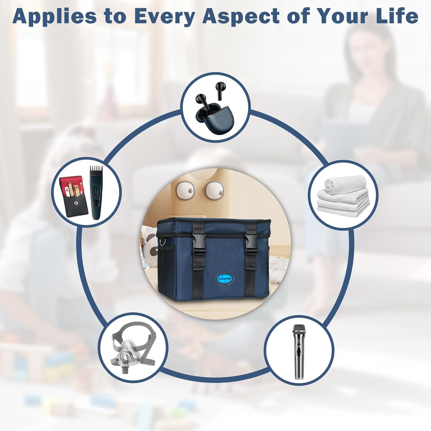 UVC Sanitizer Ozone Box with Timer, Foldable Large Cleaner UV Bag w/strap and USB Port, Portable UVC Light Tote 185nm wavelength for Mask, Cell Phone, Key, Towel 12L/3.17 gal