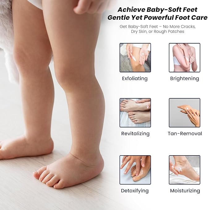 - CRACKED HEEL REPAIR – This luxurious, pampering foot scrub deeply cleanses and exfoliates dry, rough feet. Infused with pumice stone powder to gently remove dead skin cells, it helps smooth cracked heels and rough calluses, leaving feet soft, refreshed, and revitalized