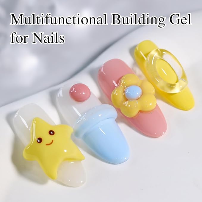 - Multifunctional Solid Building Gel: This solid building hard gel can be used for nail extensions, sculpting,carving, nail designs and stick decoration. It can also be used to apply gel tips and large nail charms/jewels as well as to make charms in silicone molds. Soft material can be kneaded into any shape or other decoration, allowing you to create various 3D nails art.