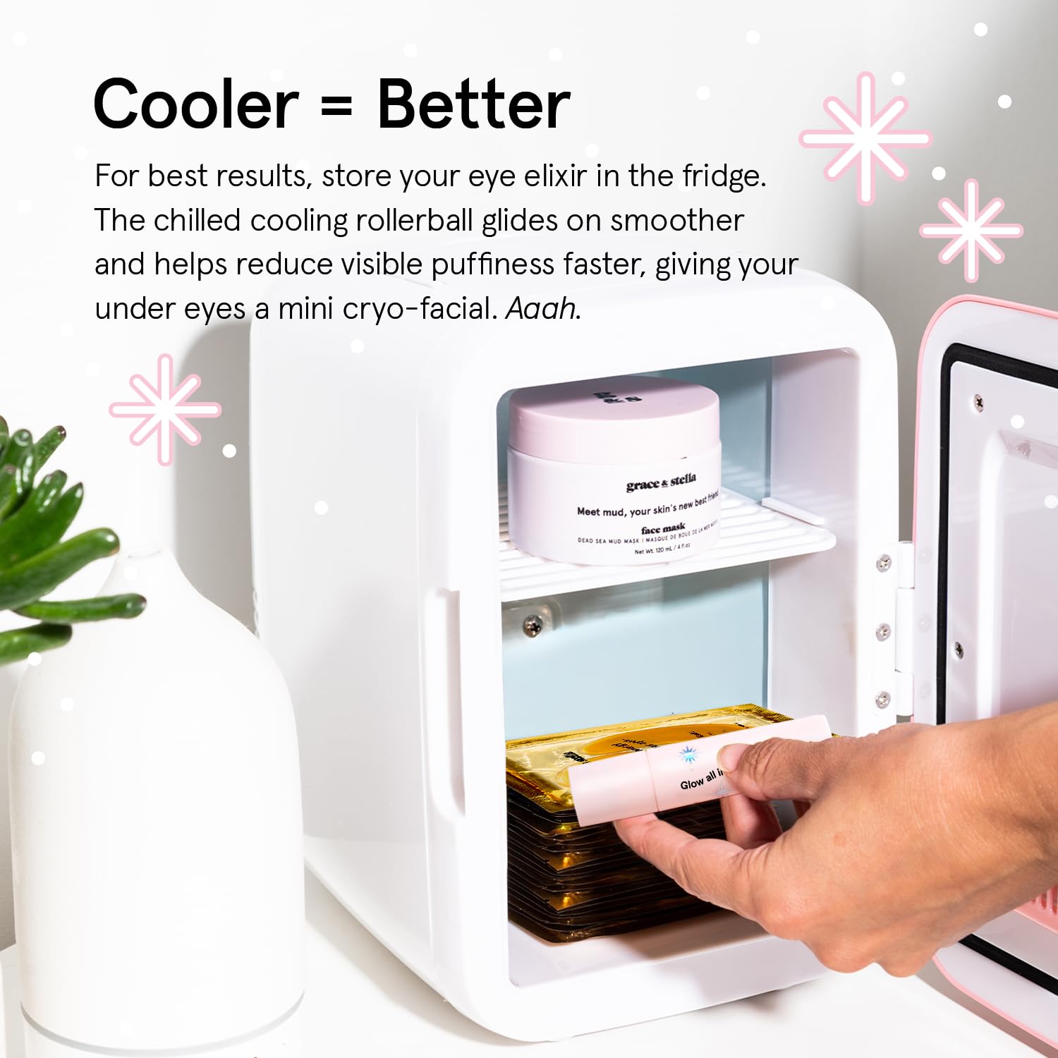 - How To Get The Best Glow: Roll on this under eye roller twice daily for best results. Keep it in the fridge to activate its cryo-cooling effect. If the roller’s stuck, give it a shake or warm in your hands.