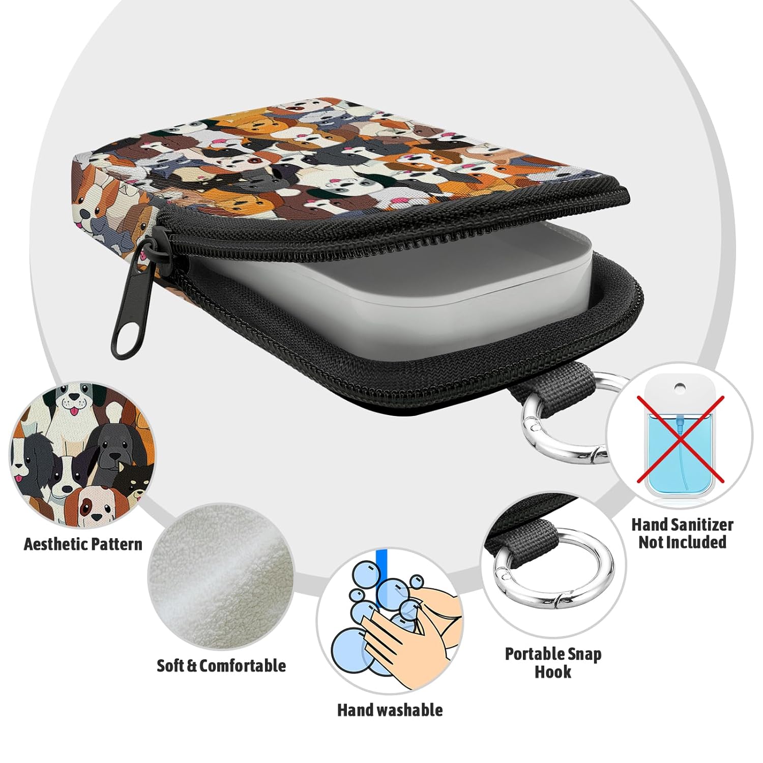Dogs Hand Sanitizer Spray Case, Cute Hand Sanitizer Holder Zippered Pouch, Fashion Accessory with Snap Hook for Glow Mist and Power Mist 1FL OZ