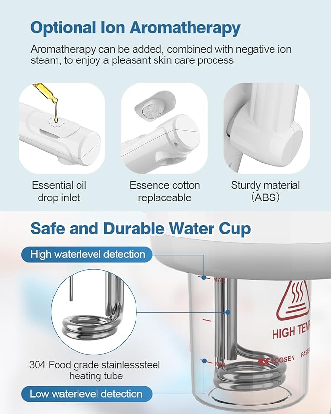- [Ozone Facial Steamer] The Kingsteam facial steamer ensures safe and worry-free operation with an automatic shut-off function and compatibility with aromatherapy oils.