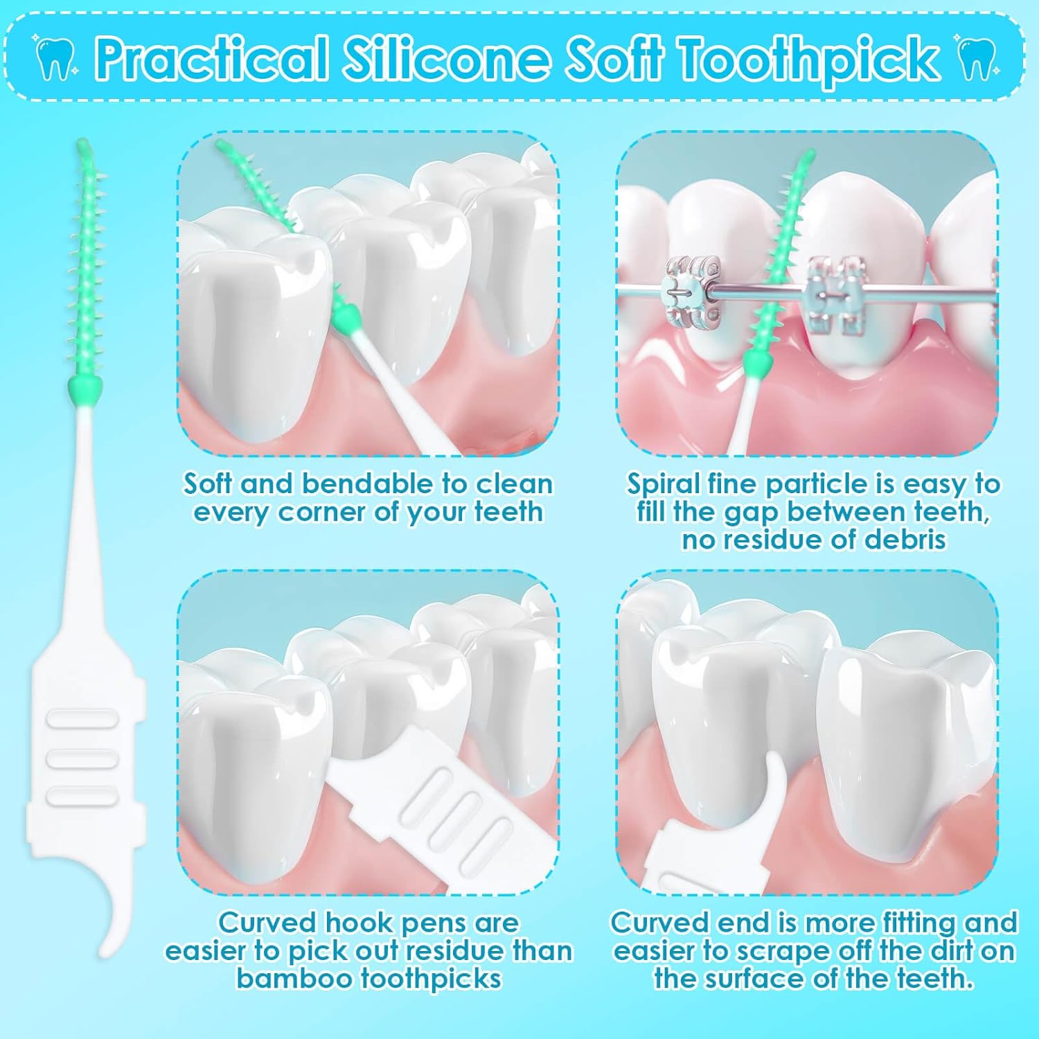 - Soft and bendable: Braces brushes for teeth are soft and can be bent 360° to reach all areas of your mouth effortlessly, the dental brush can reach every nook and cranny of your teeth, effectively removing oral residues and ensuring a complete clean