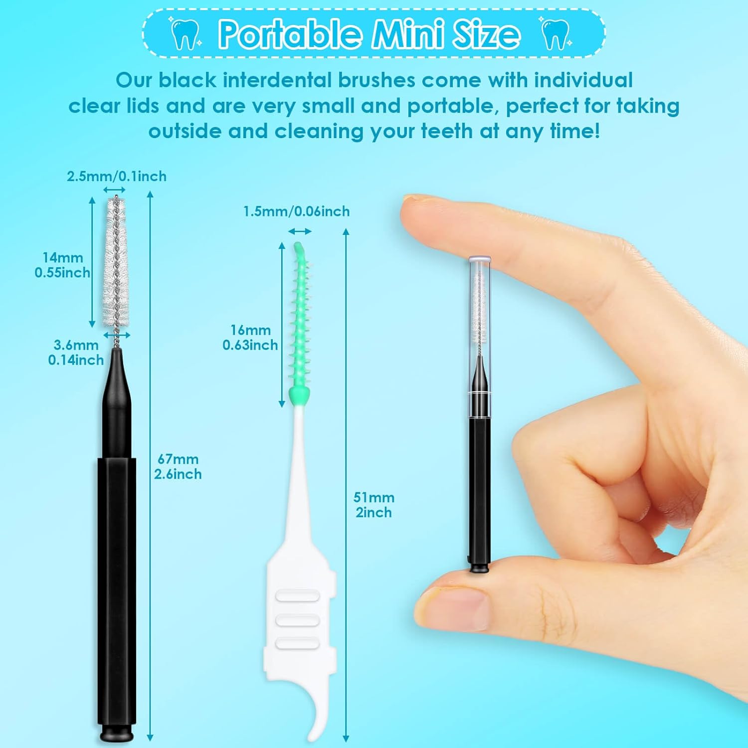 - Convenient to carry: The interdental brush is mini and lightweight with a clear protective cover for easy storage and portability; perfect for home, travel, work, school and more; keep your teeth clean and white anytime, anywhere