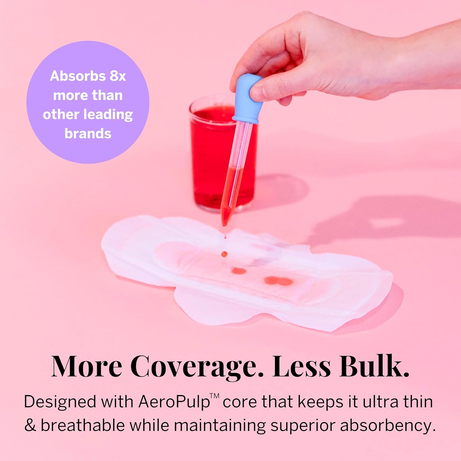 - INCREDIBLE ABSORBENCY. These multilayer pads absorb 160 mL giving you all day overflow protection, locking moisture deep in the core.