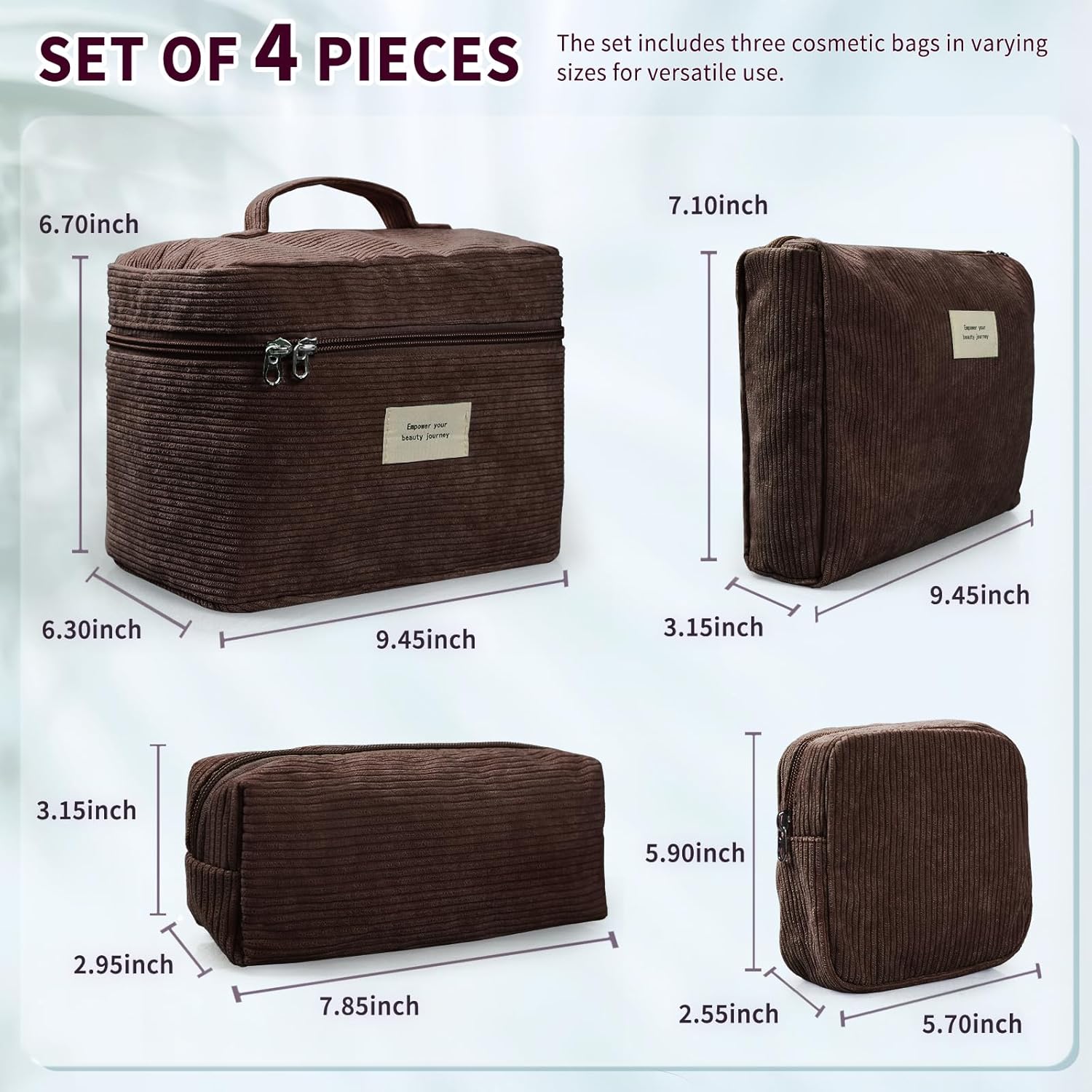 4 Pcs Makeup Bag for Women Corduroy Cosmetic Bag Aesthetic Cute Bags Multi Size Purse Pouch Travel Toiletry Bag Set Makeup Organizer with Zipper (BrownCorduroy)