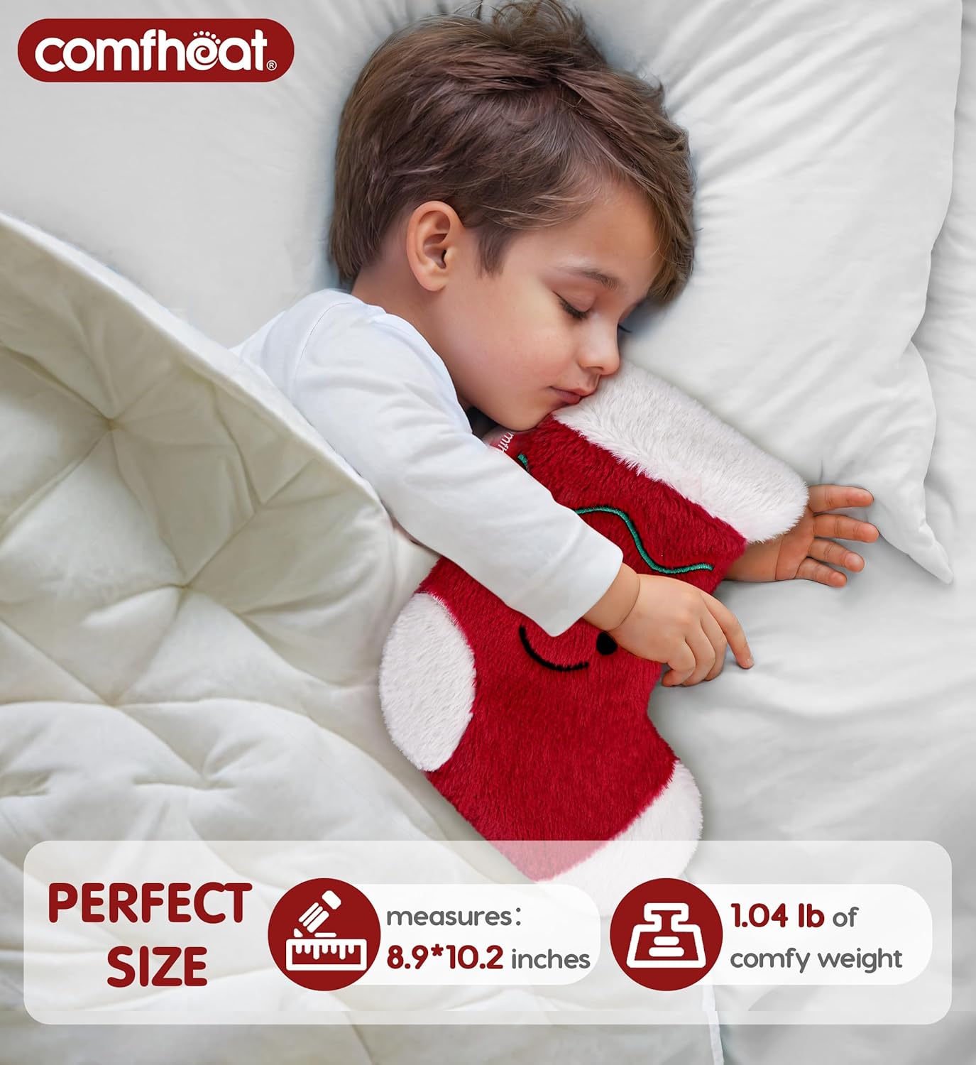 - Stylish & Versatile Design: At 10.2 x 8.9 inches and 1.04 lbs, this sock-shaped heating pad is perfect for targeted relief on shoulders, abdomen, while doubling as a festive decor item