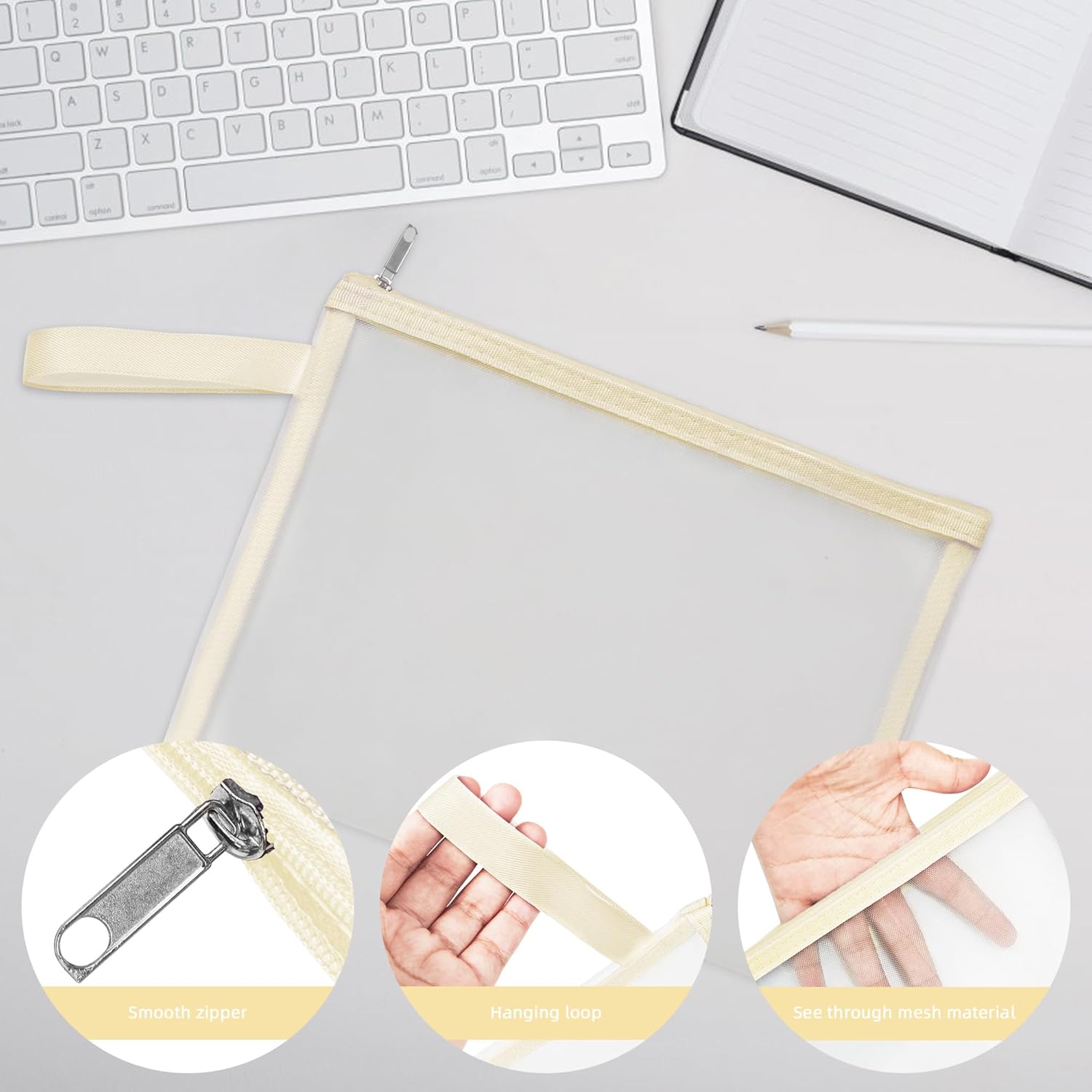 - See throught mesh pouches: this mesh bag is designed to be transparent, you can see items what's inside directly, save you time to find things, also with a zipper, which can prevent items from falling out