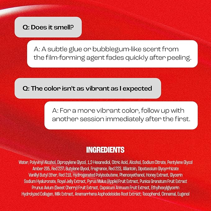 - DEEPLY NOURISHING FORMULA. Enriched with powerful Royal Jelly, Honey, Apple, Cherry, Pomegranate, Milk Protein, and Marine Collagen, this peel off lip tattoo deeply hydrates and nourishes. Special Peptides and Collagen smooth fine lines, enhance moisture and elasticity for younger-looking lips.