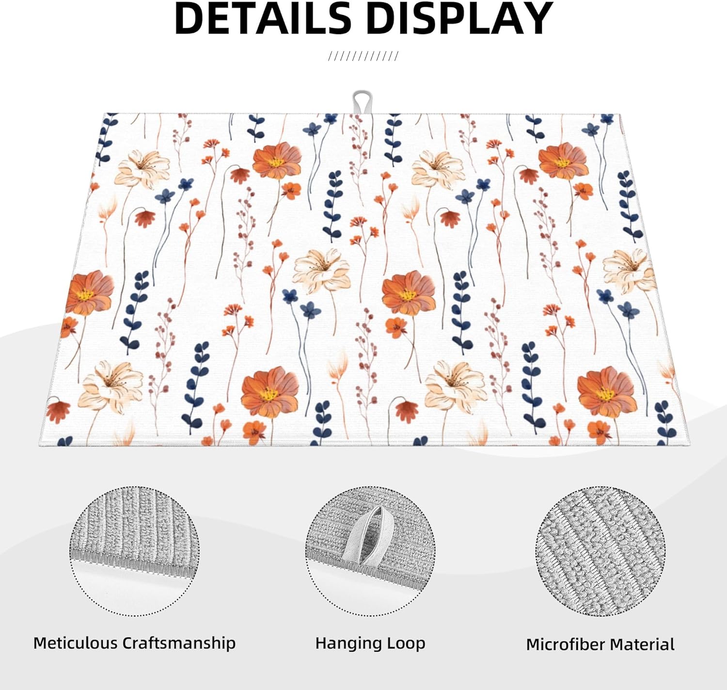 - Cute print can easily dress up your kitchen dining room. Drying pad suitable for draining racks to keep the counter dry and clean, or you can place pans, bowls, plates, pots, cups, bottles, tableware, ect