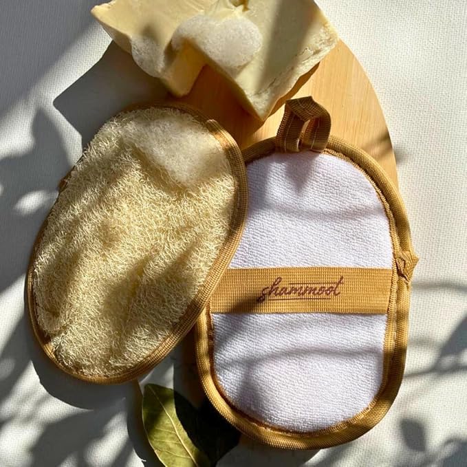 - 2-Sides, 2x Smoother – Enhance your routine with 2-sided natural sponges for body made from Egyptian lufa plant. Scrub away dead skin with the textured side, then use the terry-cloth body sponge to moisturize.