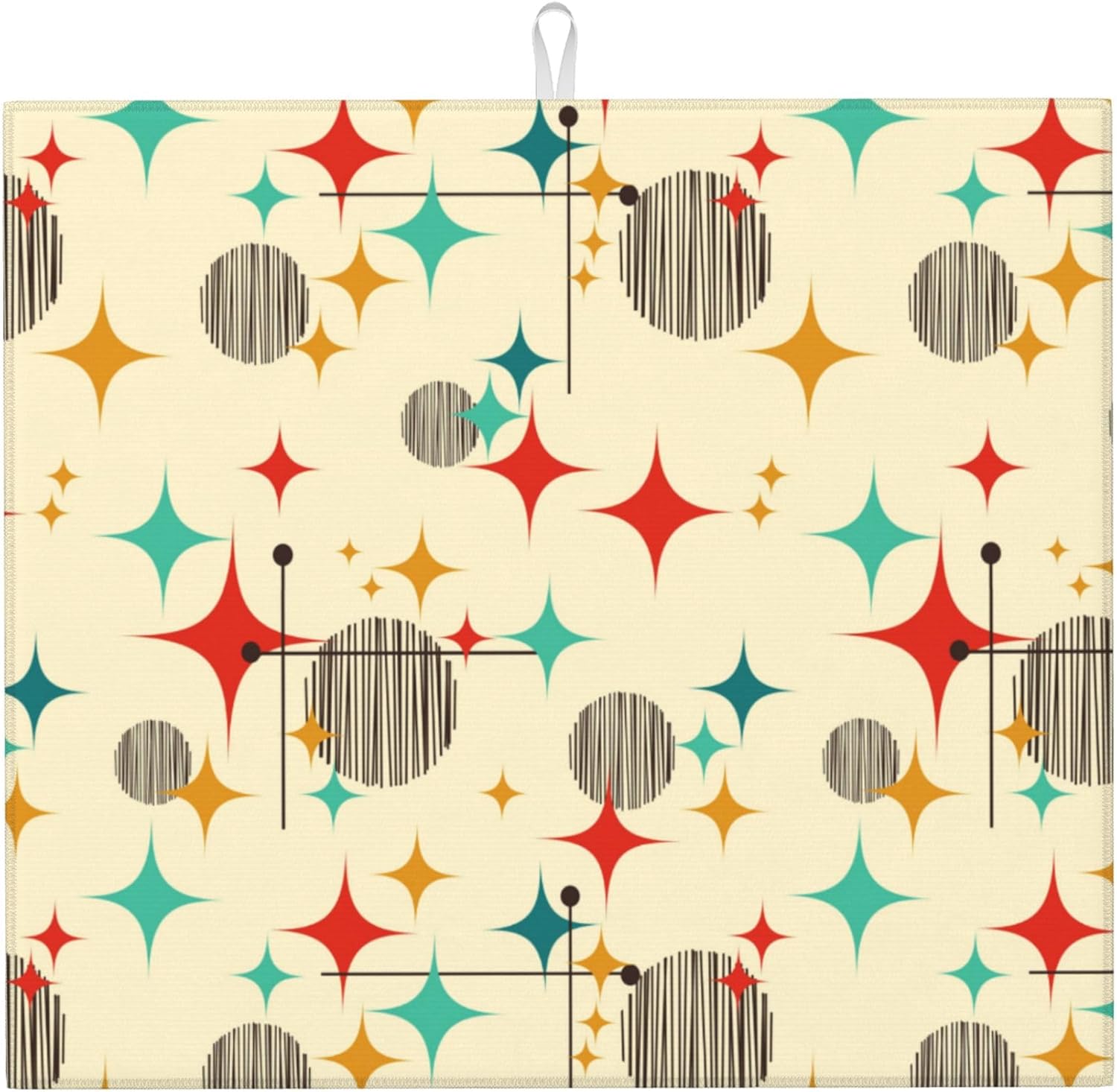 Mid Century Modern Atomic Retro Dish Drying Mat for Kitchen Counter Washable Absorbent Drying Mat Reversible Microfiber Yellow Drying Pad Home Holiday Decor Kitchen Accessories 16"x18"