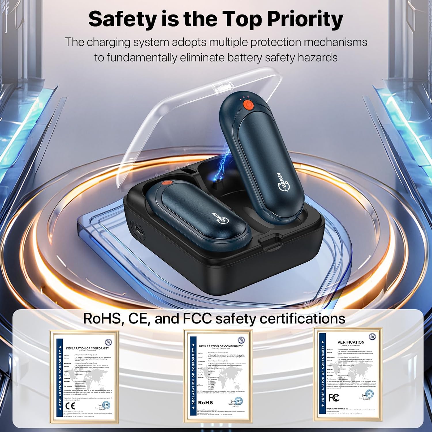 - Reusable & Rechargeable Hand Warmers: Each Rechargeable hand warmer features a powerful 2000mAh battery that ensures long-lasting heat. Comes with a 10000mAh fast charging case, allowing you to recharge on-the-go. The charging case also has its own built-in LED indicator to show the remaining power level
