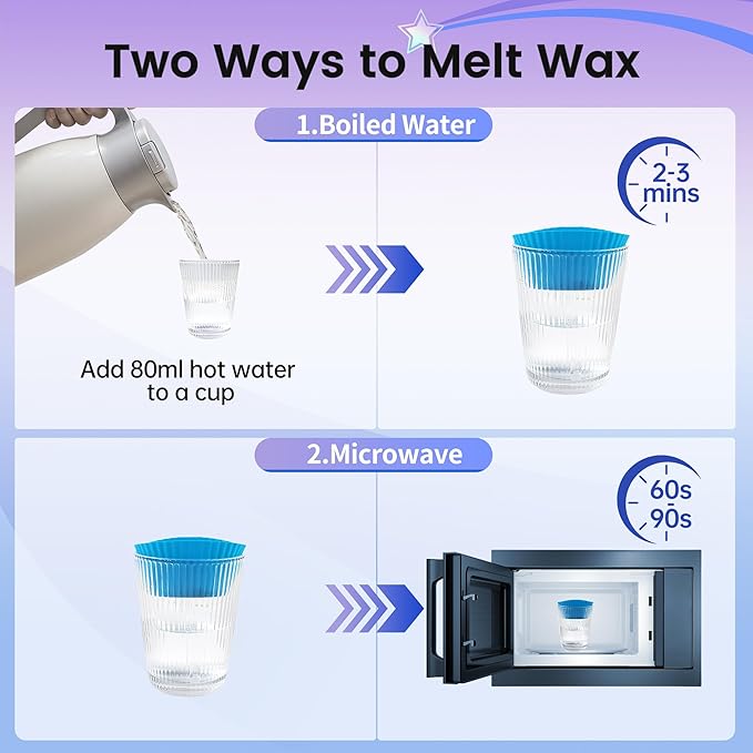- 【Simple 4-Step Process】Place the wax beads (100g included) into the silicone heating cup and warm in the microwave for about 2-3 minutes (time may vary based on the amount of wax and microwave power).Dip the tip of one of the 30 included nose sticks into the melted wax.Insert the wax-coated stick into your nostril (avoid inserting too deep).After about 1 minute, once the wax hardens, quickly pull the stick out for clean hair removal.