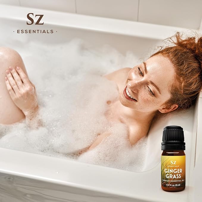 – Ginger Grass Essential Oil – 100% Pure & Undiluted (Cymbopogon martinii VAR. Sofia)– Fresh Citrusy Earthy Aroma – Aromatherapy, Perfumery, Skin Care – Therapeutic Grade - 1/6 oz. 5 mL