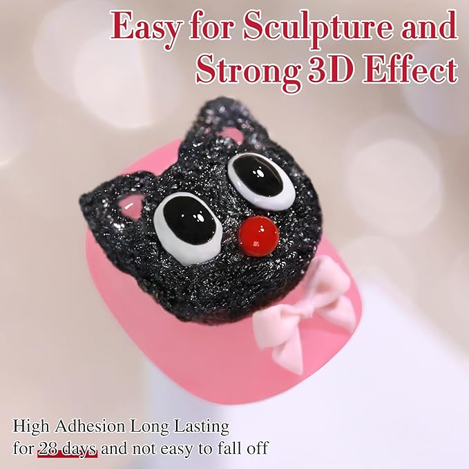 - 3D Sculpting Gel for Nail Art: this is a new upgraded solid 3D Nail gel with white square bottle. You can enjoy your nail art design at home with this non-stick hard building gel, this clear solid nail gel is easy to use and apply. It requires no tools and has a solid texture that won't flow. Required base top coat, and need to cure under nail lamp