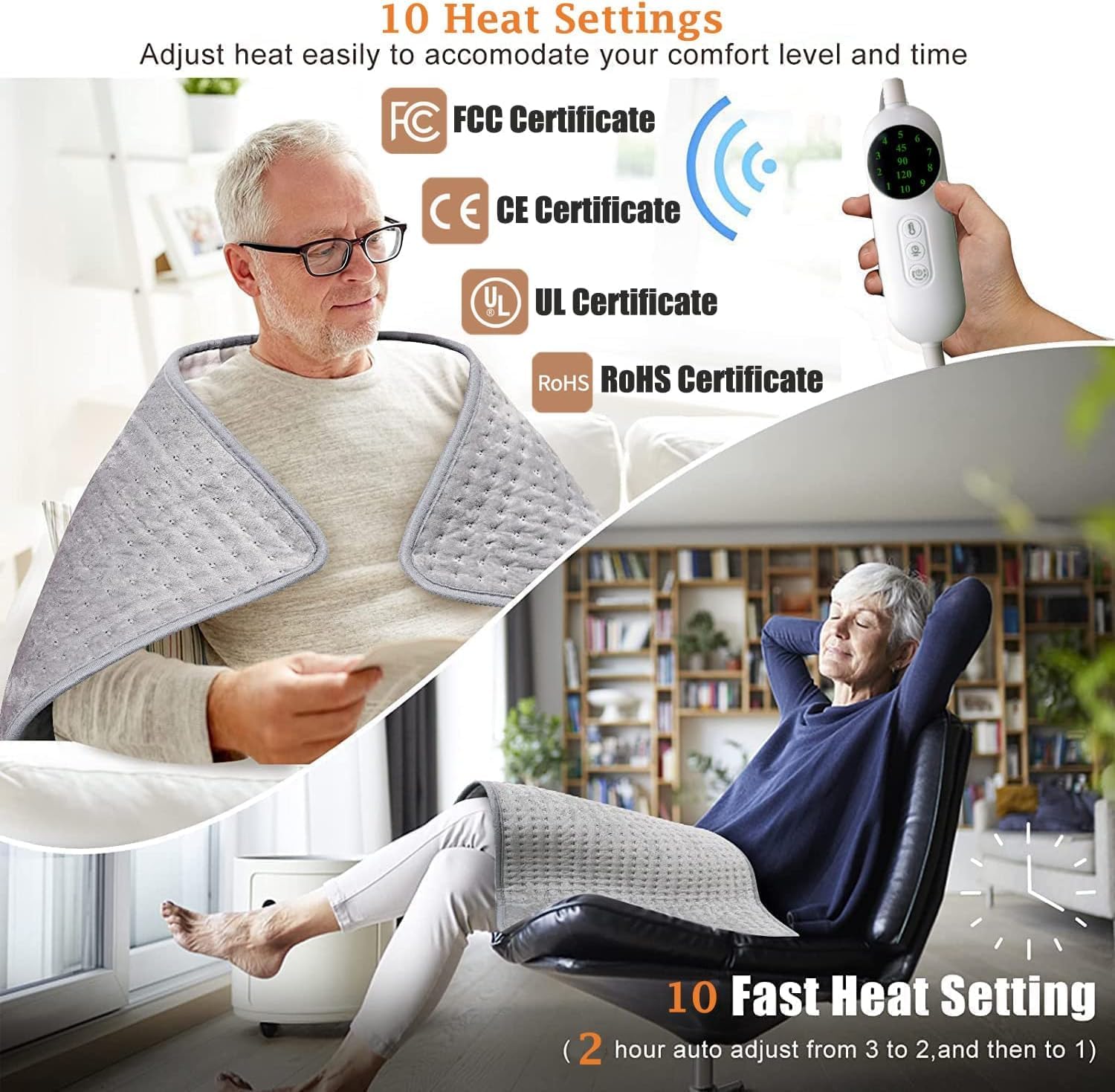 - 【Precision Temperature Control】Upgrade from basic 6-setting heating pads to our 10 adjustable heat levels (85°F-149°F). This smart heating pad includes 3 auto-shut off timers (45min/90min/120min) and overheat protection - making it the safest heating pad for overnight use
