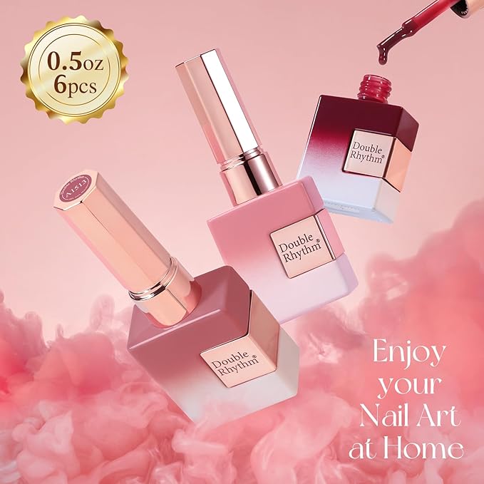 Double Rhythm 6 Pcs 15 ML Gel Polish Set Same Color Same Bottle Soak Off Gel Polish Kit Nail Art Manicure Salon DIY at Home for Women (Jelly Translucent Rose Pink Burgundy Red-T6-2)