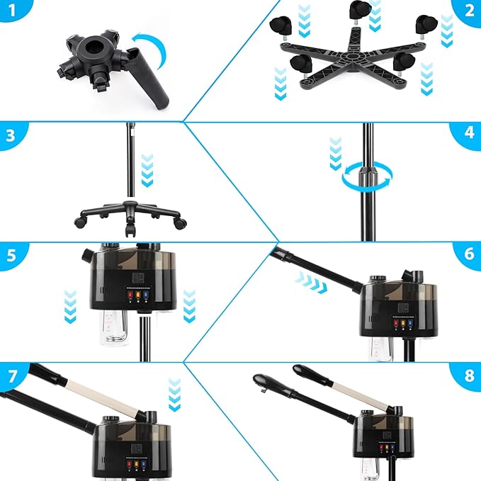 - 【Facial Steamer Adjustable】The height of this professional facial steamer can be adjusted from 36~51 inches, 360° rotatable nozzle, 360° rotatable main body, Keep the nozzle at least 25~30 cm (9~11 inches) away from your face, when using and the best steaming time is 15-20 minutes.