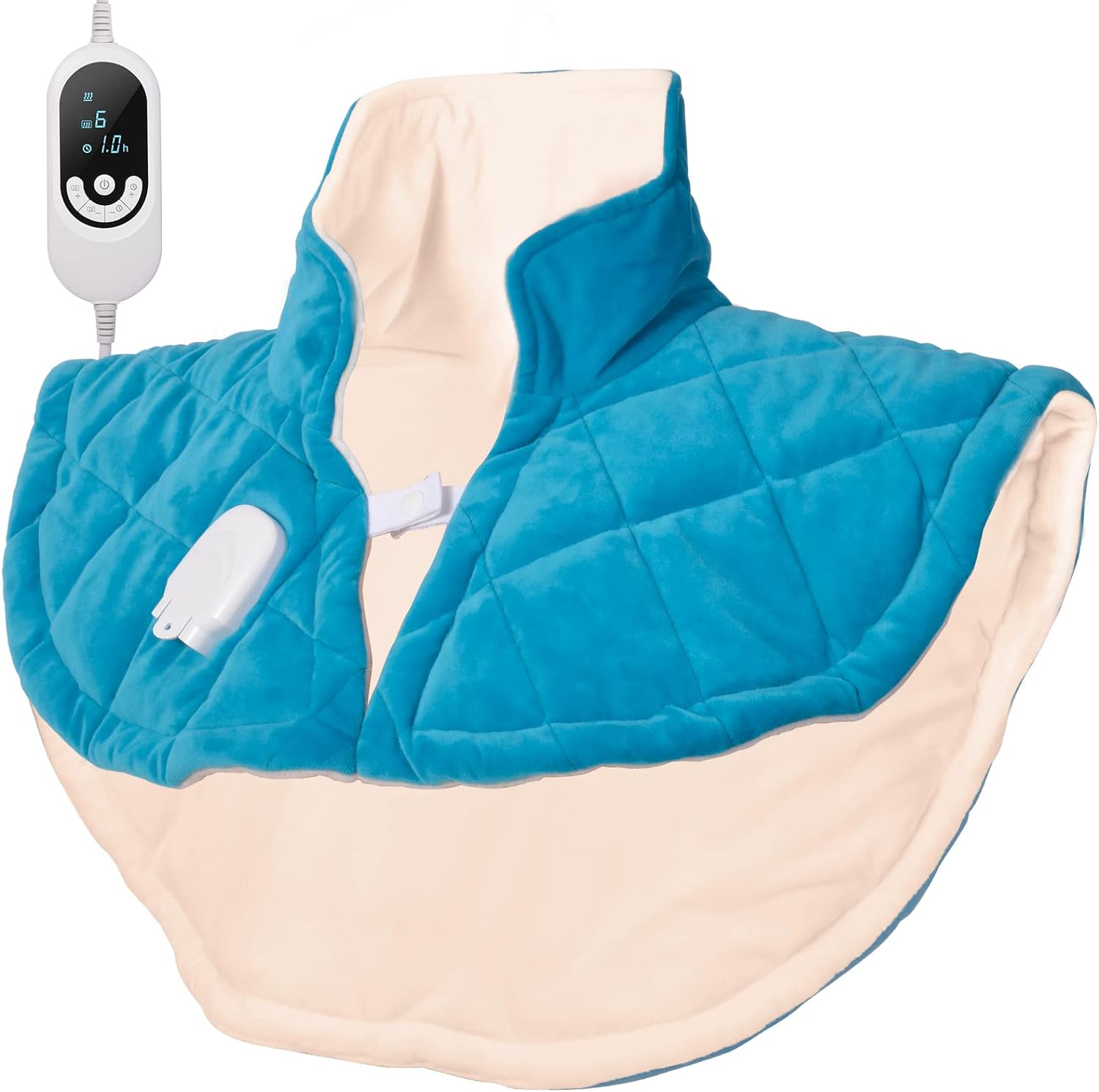 Electric Heating Pad for Neck and Shoulders, Far Infrared Heated Pad for Pain Back Relief, Weighted Electric Heating Pads with Auto-Off, Gifts for Women Men Mom Dad(L, Blue)