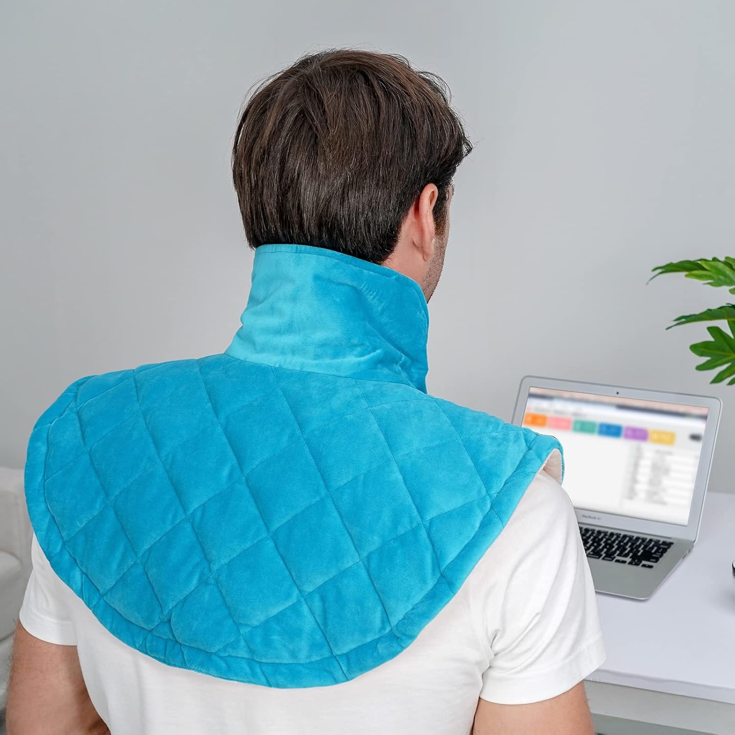 - 【Weighted Design】: Neck and shoulder heating pad is filled with micro-glass beads, which are evenly distributed in the inner of the heating pad. It will fit your neck and shoulders better. Weighted heating pad ensure the heats to penetrate effectively, It effectively relieves neck, shoulder, and upper back pain, eases muscle tension and soreness. Also, it can be applied flexibly to the abdomen and waist to help relieve period cramps.