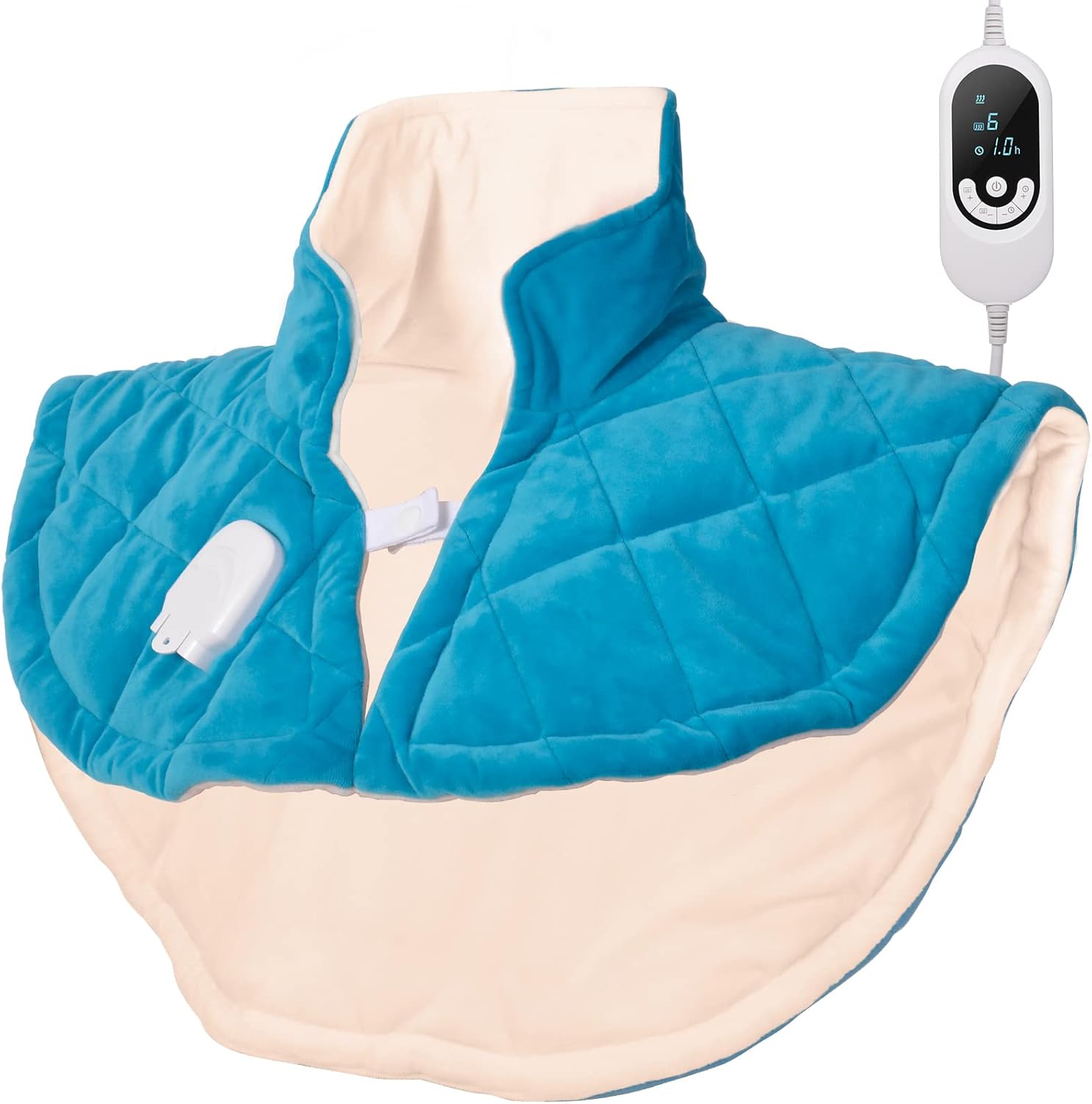 Heating Pad for Neck and Shoulders and Back, Weighted Electric Heat Pad for Pain Relief, Large Heated Wrap, 6 Heat Settings, 6 Auto-Off, Gifts for Women Men Mom Dad(Blue M)