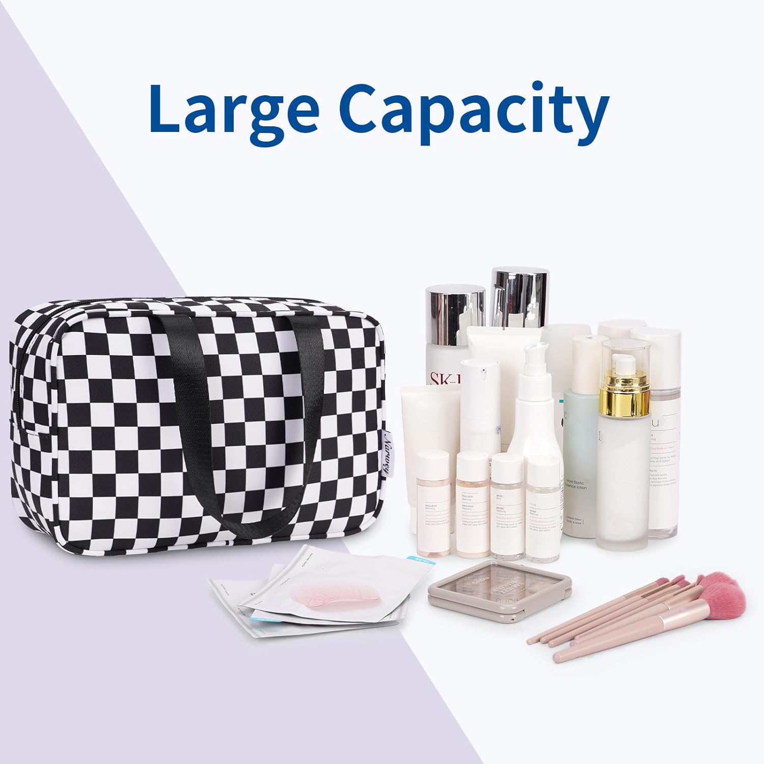 Narwey Large Toiletry Bag Women Cosmetic Bag Travel Makeup Bag Organizer Medicine Bag for Toiletries Essentials Accessories (Black Checkerboard, Large)