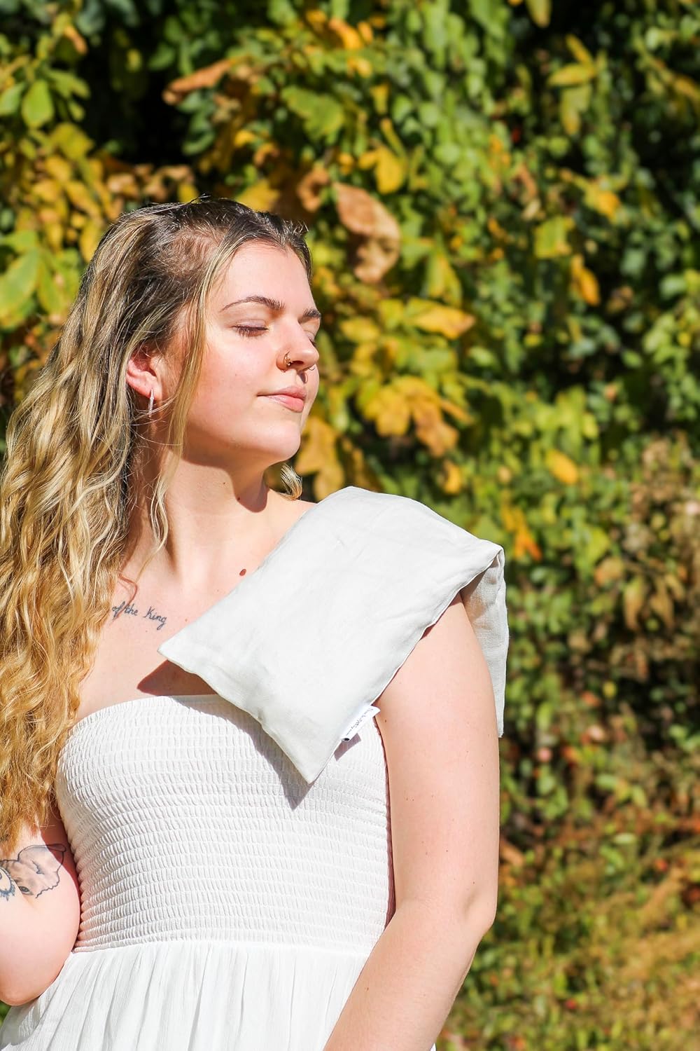 Microwave Heating Pad - 100% Linen Cover, Unscented, Size 18x7, Comforting Heat Pad for Cramps, Back,Neck,Shoulders, Leg Pain, Hot Microwavable Heat Pack, Color: Natural, Made in USA