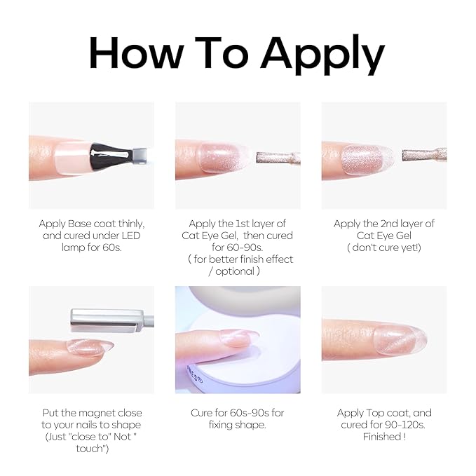 - Shimmery Pigmented Art: For best results, hover the magnet over uncured polish to shape dazzling patterns before curing (60s under lamp). Pro tip: Keep the magnet close but not touching for sharp, vibrant effects every time