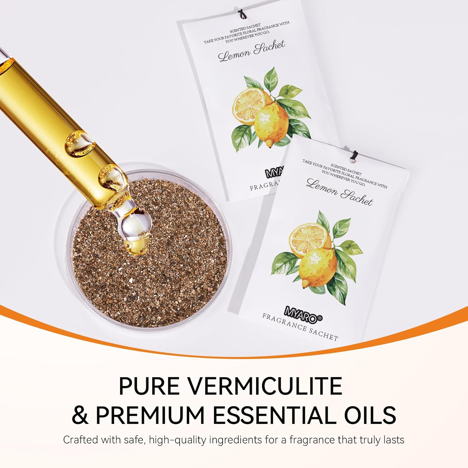 - MYARO Lemon Sachet Bags: Includes 12 scented sachets (each bag size: 4.13 inch x 2.76 inch). Our natural fragrance will take you on a journey with the fresh scents sachet packets