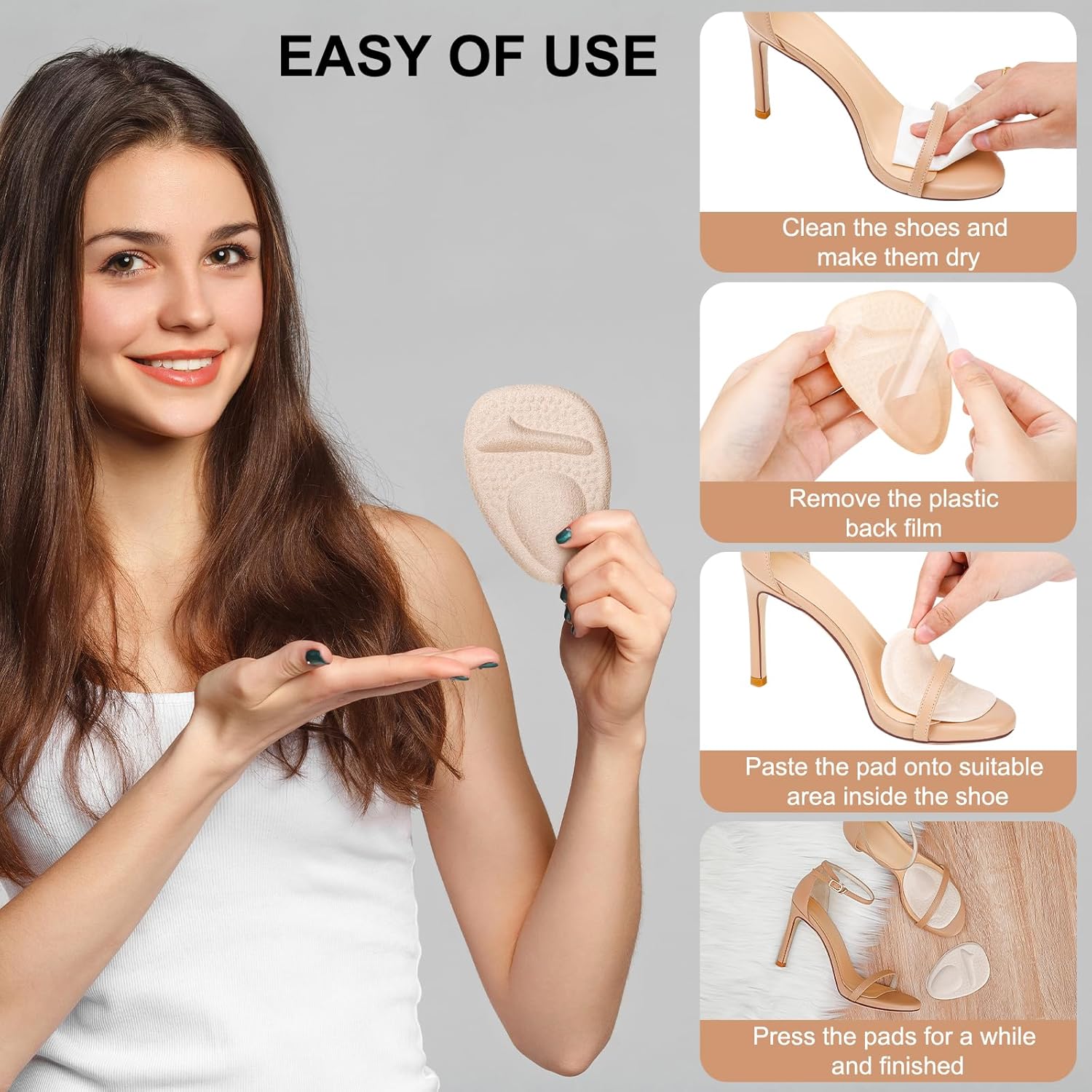- 𝙀𝙖𝙨𝙮 𝙩𝙤 𝙐𝙨𝙚: For the heel cushion pads, just remove the back film and stick it to the shoe heel area for a snug fit; and for the ball of foot cushions, just remove the back film and paste it onto the shoe where make your foot feel comfortable. No need for complicated adjustments or tools.