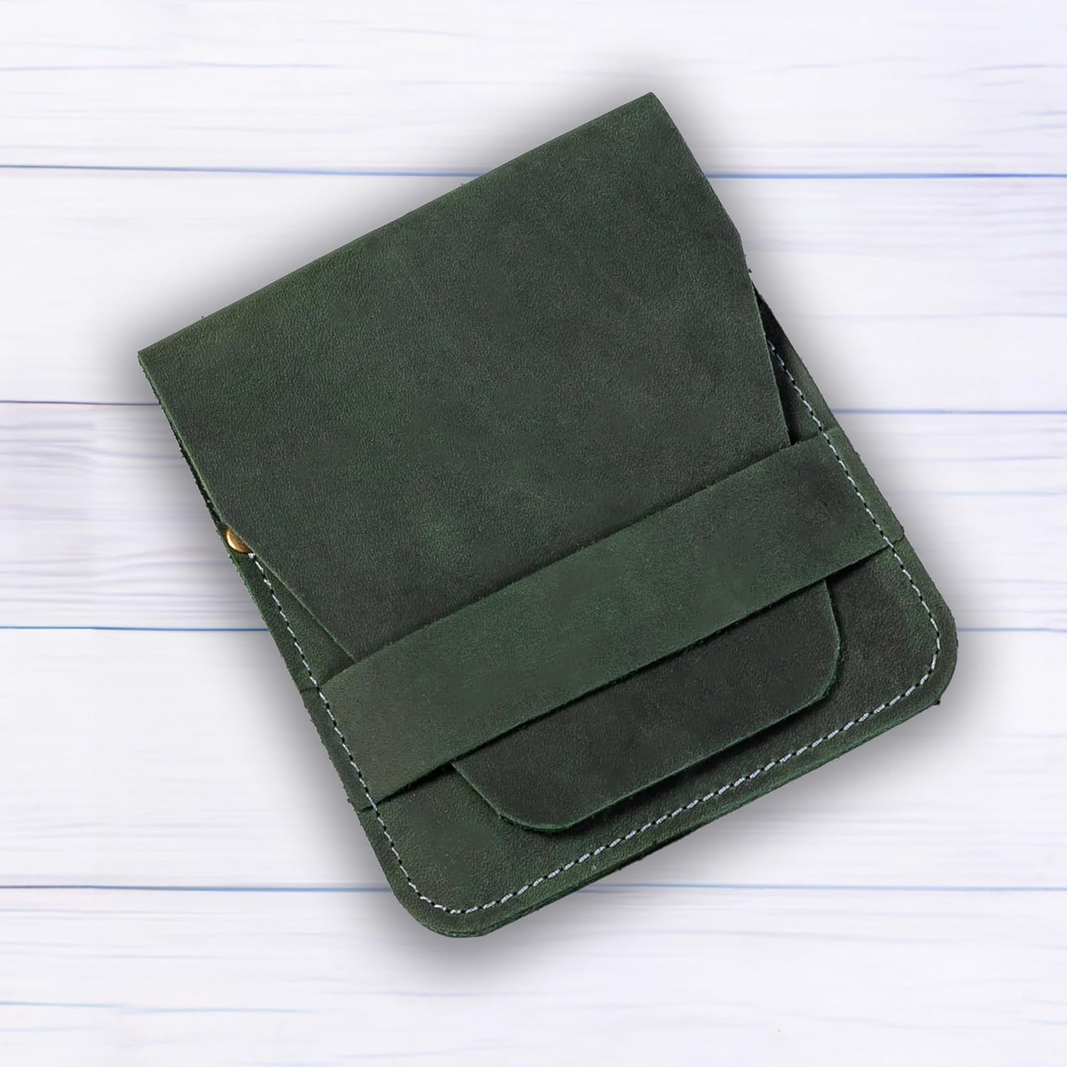 - SIZE - closed case - 5 in * 5.1 in (130mm * 135mm). These holders are hand cut from rustic, durable Genuine Leather and finished with quality fine stitching. Carry your tools with class!