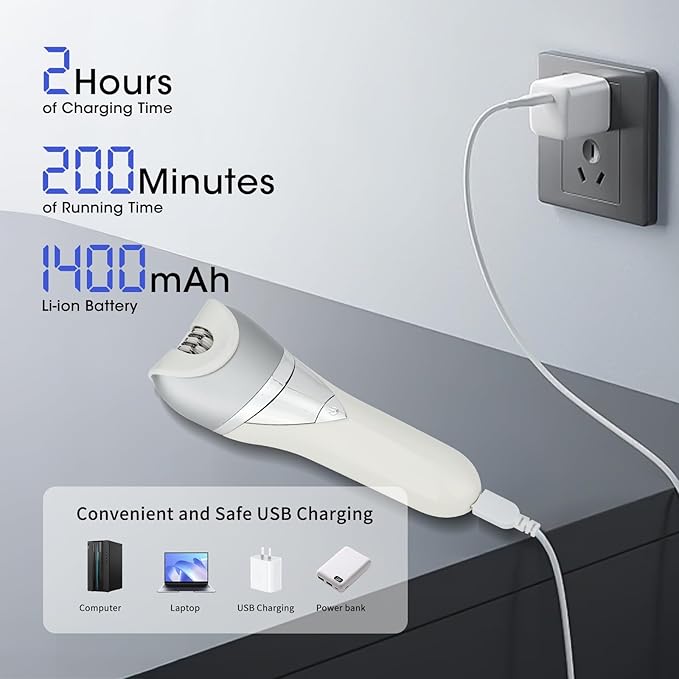 - FASTER CHARGING, LONGER RUNNING TIME - USB Quick Charging, fast 1.5 hours charging allows 100 minutes shaving. Built-in rechargeable Lithium Battery has super long lifespan, no need to charge frequently. What’s more, the unique led display can show you the rest power, making it always ready for use