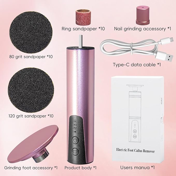 Electric Callus Remover,CHNYNJN Foot File Grinder Tool with Speed Controller and 20pcs Replacement Sandpaper and 10 Sand Rings Disk for Men Women Dead Dry Crack Skin Calluses