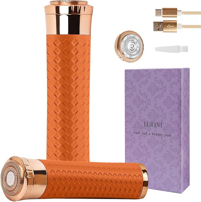 Facial Hair Remover for Women, Painless Rechargeable Hair Removal Device, Comes with 2 Replacement Heads, Portable Electric Shaver/Razors for Face, Chin, Upper Lip, arms (Orange)