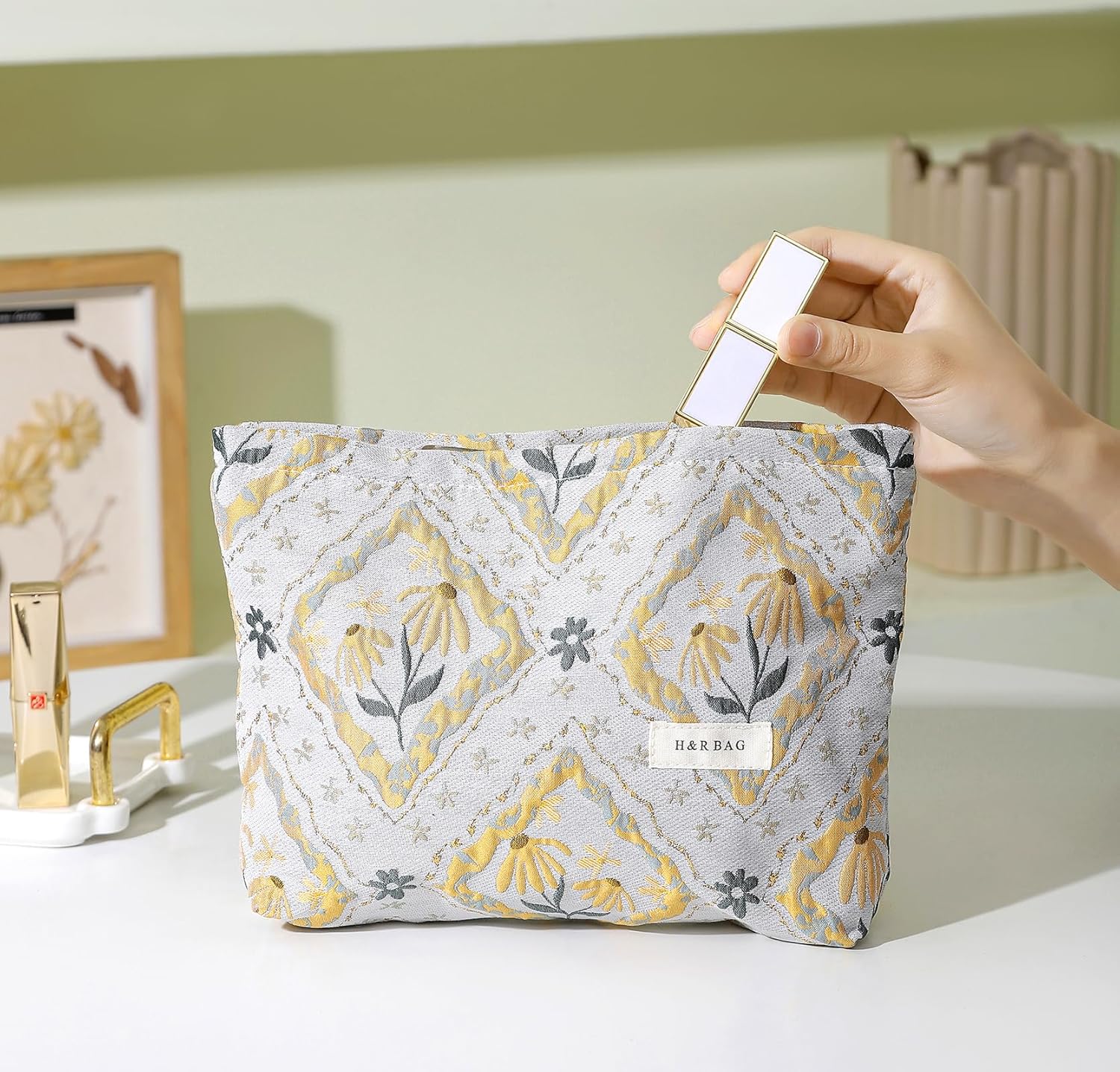 - Floral Pouch Pattern Small Cosmetic Bag for Purse: The large pouches for purse feature a beautiful floral print, adding a touch of style to your makeup routine. Make you feel happy everyday.