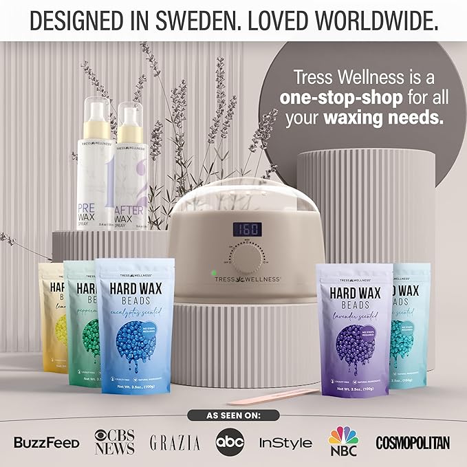 Tress Wellness Waxing Kit for Sensitive Skin – Safe for Face & Skin, Prep & Aftercare Spray, Easy to Use – At-Home Kit for Face, Bikini, Brazilian & Full Body - Digital Display, Beige