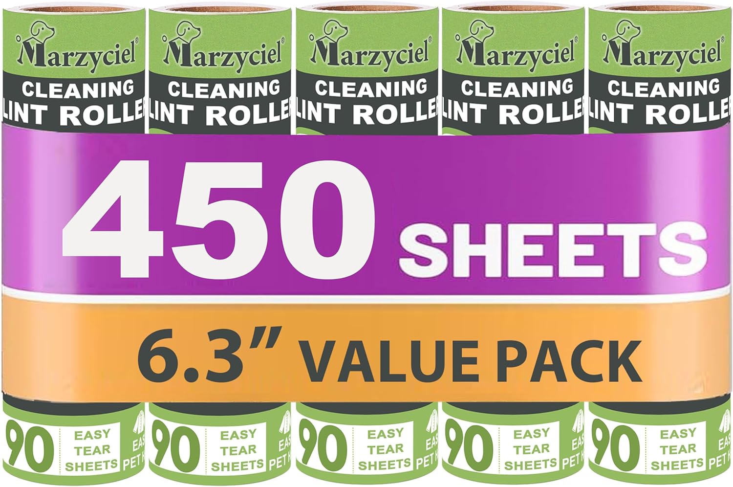 - Large Surface Area, High Sheet Count: Includes one cotton roller and 5 packs of 90 sheets each, totaling 450 sheets. With a width of 6.3 inches (16 cm), this eco-friendly and odorless extra large lint roller is perfect for clothing, sofas, carpets, pet beds, floors, and other furniture. Gentle on fabrics, it is the ideal choice for pet owners.