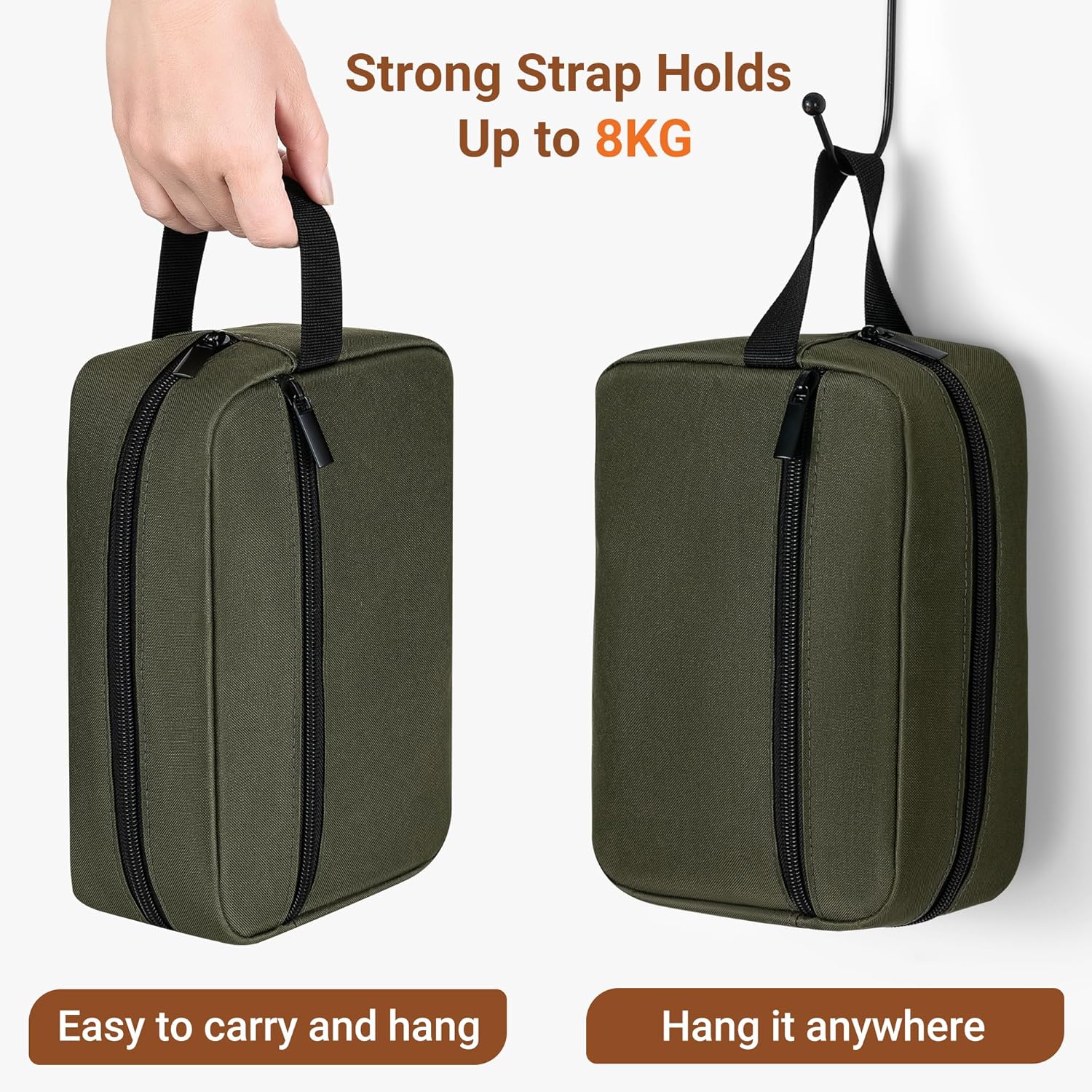 Elviros Travel Toiletry Bag for Women and Men, Lightweight Makeup Bag Hanging Dopp Kit with Shaving Compartment Cosmetic Organizer Small Tool Bag Travel Essentials, Army Green