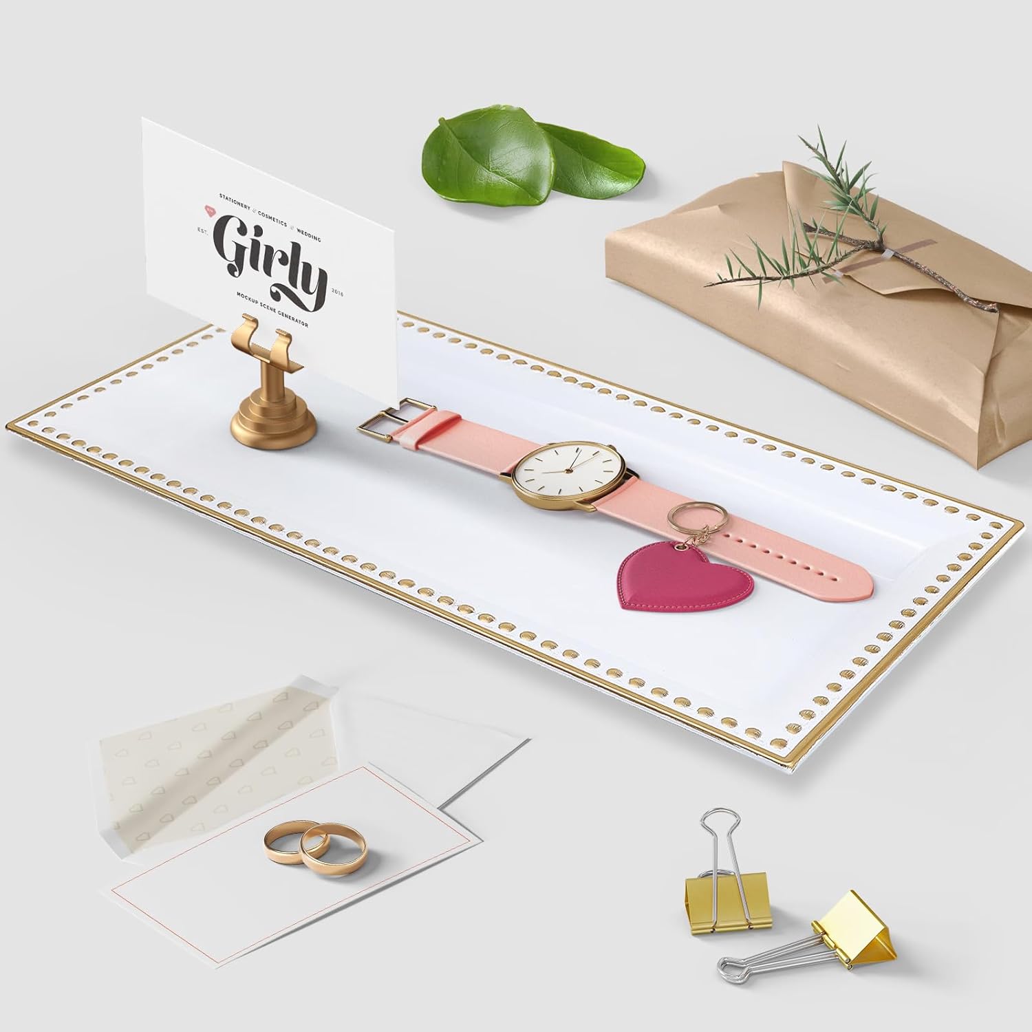 - Versatile & Practical Design: This 14" x 7" x 1" rectangular vanity tray is perfect for organizing small items in your bathroom, desk, kitchen, or entryway, keeping your space neat and clutter-free. Ideal for perfumes, toiletries, jewelry, and office supplies.