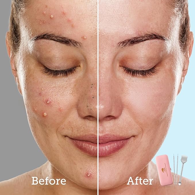 LitBear Pore Prep Tool, Blackhead Remover Pimple Popper Tool Kit, Stainless Steel Blackhead Extractions Tool for Acne, Whitehead Popping, Blemish, Comedone, Pink