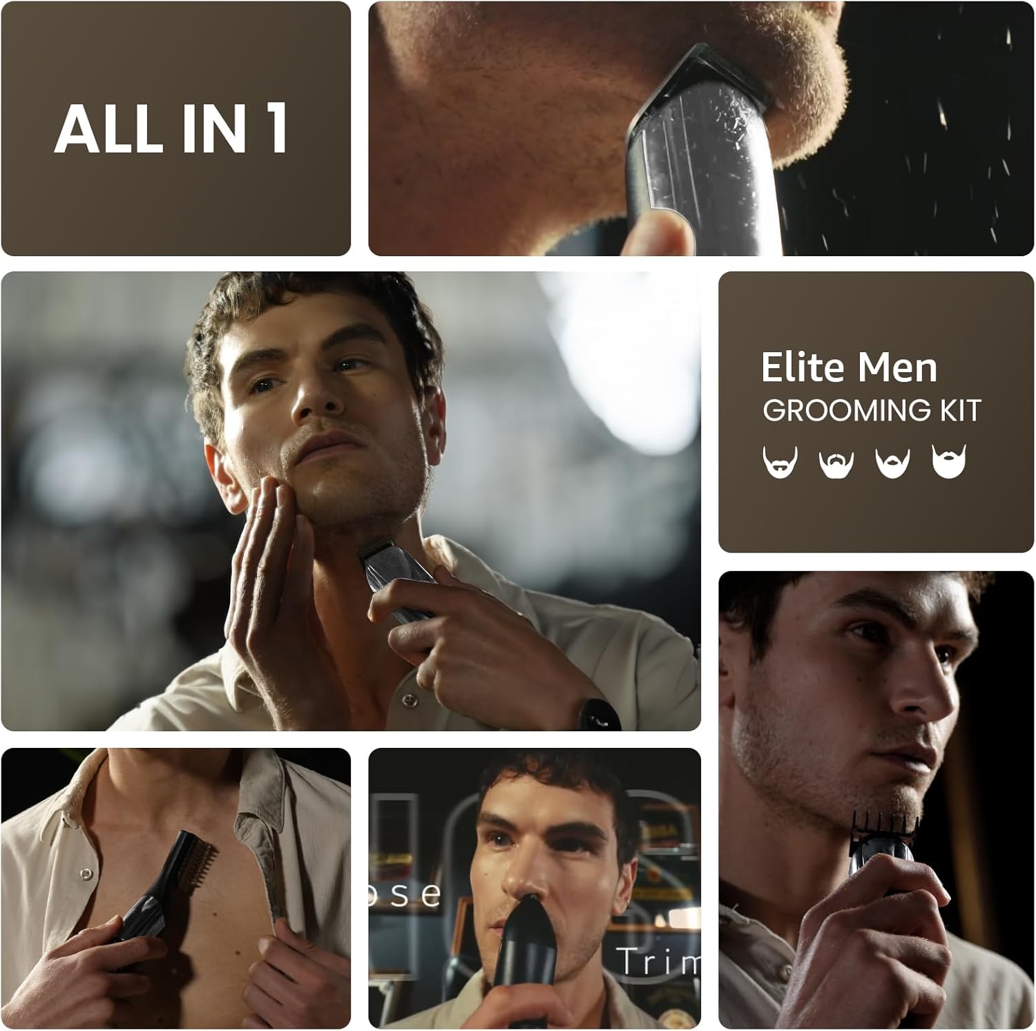 Electric Beard Trimmer for Men: 16-in-1 Professional Barber Hair Clippers - Cordless Grooming Kit - Turbo Speed & Precision Blades, Silver