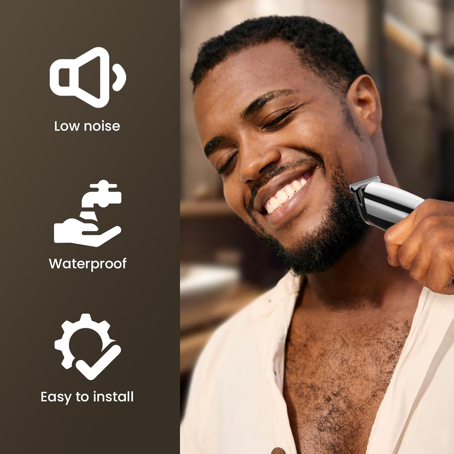 - Waterproof for Shower Shaving: Designed with IPX6 waterproofing, this grooming kit is also perfect for wet use. Enjoy a smooth, hassle-free shaving experience in the shower, and simply rinse the trimmer under running water for easy cleaning. The included cleaning brush makes maintenance a breeze. Use it with shaving gel or foam for an even smoother, more comfortable trim.