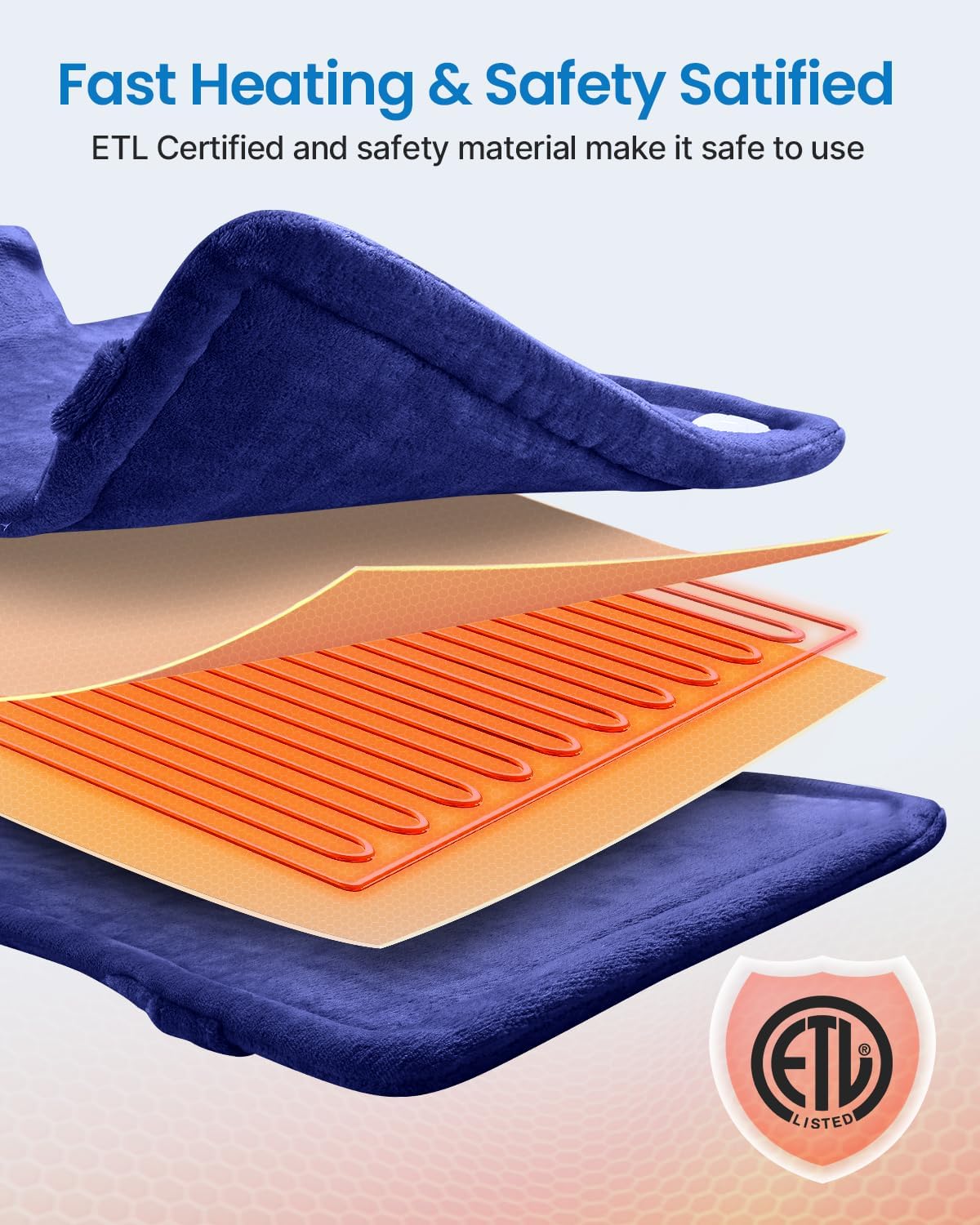 - ETL certified & FSA/HSA Eligible: The ETL-certified travel heating pad has built-in overheat protection to ensure maximum safety.This Heated Wrap pad for back, neck, and shoulder pain relief is FSA HSA Approved heating pad. Additionally, we ensure quick responses and effective solutions for any inquiries about our products.