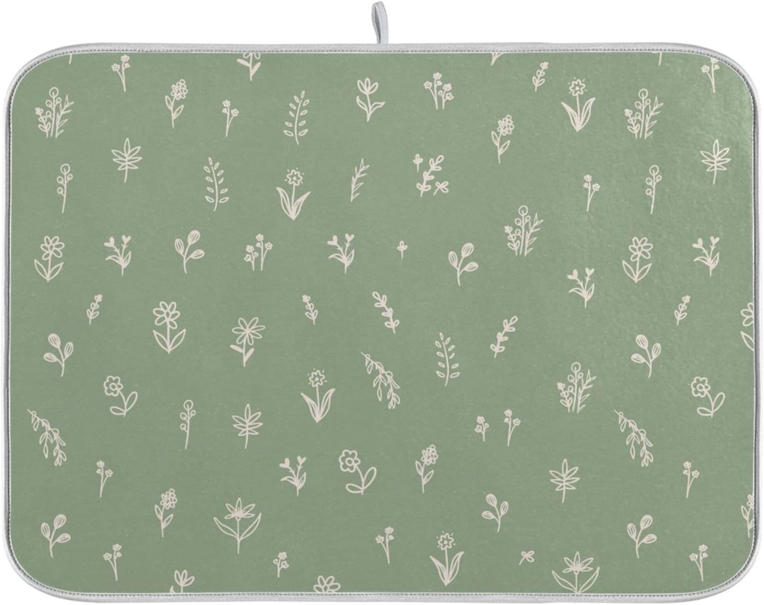 Sage Green Dish Drying Mat Quick Absorbent 16x18 Doodled Botany Flowers Leaves Herbs Plants Kitchen Drying Mat for Countertop Sink Reusable Dishes Mats Kitchen Essentials