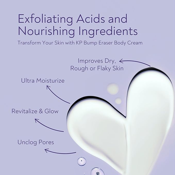 - COMPREHENSIVE TWO-STEP KP SOLUTION: Target rough, bumpy skin at its core with our powerful KP Bump Eraser Body Scrub (8.45 oz/250 g) and Skin Resurfacing Lotion (5.1 fl oz/150 mL) bundle. Specially formulated to tackle Keratosis Pilaris—often referred to as “strawberry legs” or “chicken skin”—this duo helps remove dead skin cells and replenish moisture, leaving your skin feeling smoother and healthier-looking.