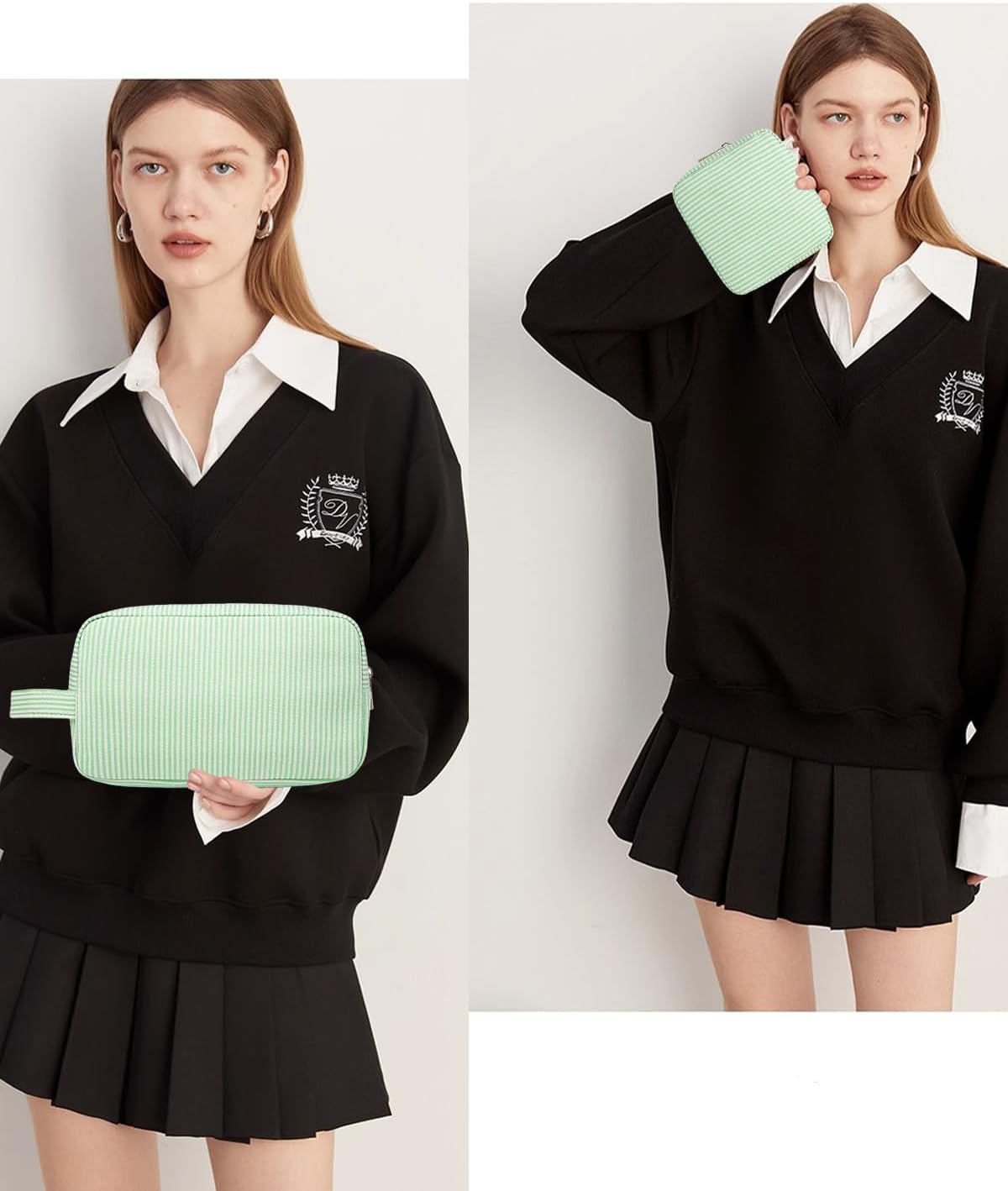 • Decent Size: You will get 2 makeup bags of different sizes to meet your different needs. And our cosmetic bag only need to open the zipper, all items at a glance, quickly select the required cosmetics. L: 9.45" X H 5.51” X W 2.76”, S: L 5.12" X H 5.12” X W 2.36”