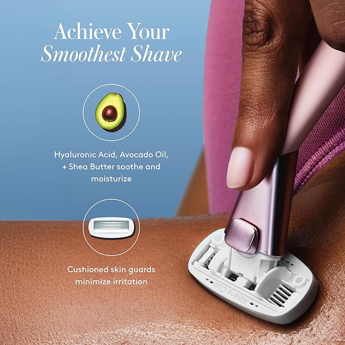 - Serum-Infused Blades: Enhanced with moisturizing shea butter and a gentle water-activated hyaluronic acid serum to hydrate and moisturize skin, soothe, and prevent irritation.