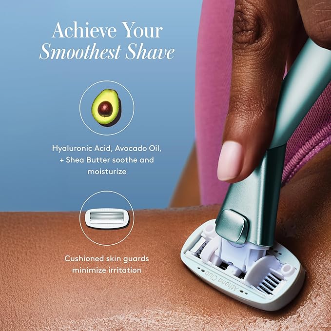 - Serum-Infused Blades: Enhanced with moisturizing shea butter and a gentle water-activated hyaluronic acid serum to hydrate and moisturize skin, soothe, and prevent irritation.