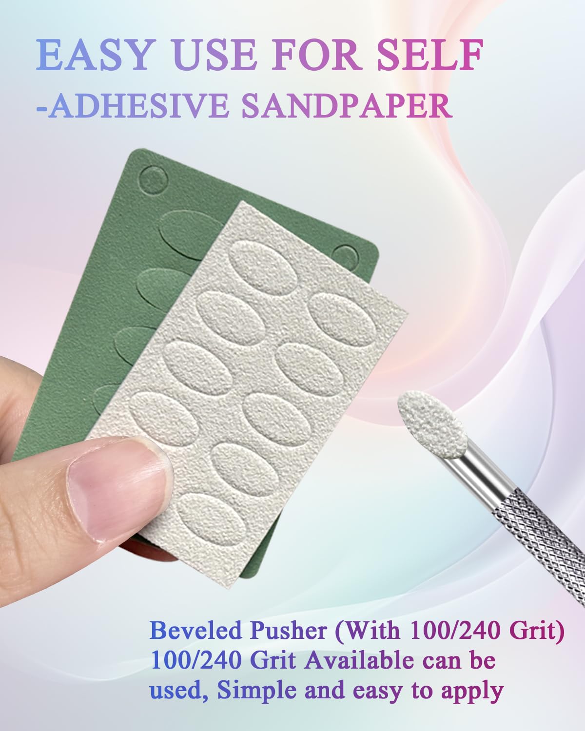 - Professional Cuticle Care Tool - Dual Ended Cuticle Remover with self-adhesive 100#/240# grit to effectively clean nail dirt, offering a safe and efficient disposable nail file solution. Ideal for gel polish removal, Care for Cuticles, and nail preparation, meeting the needs of both beginners and professionals.